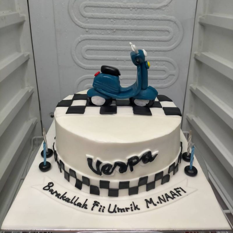 Kue ultah motif polis hitam putih bundar.